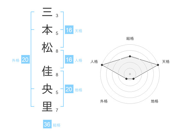 三本松 佳央里さんを姓名の画数から五運を鑑定