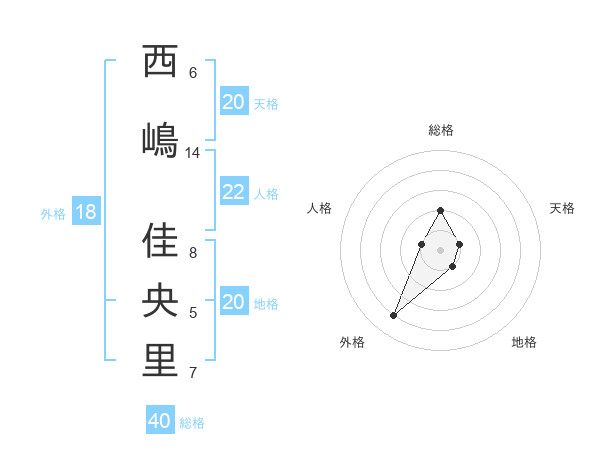 西嶋 佳央里さんの総格は40画の2点!