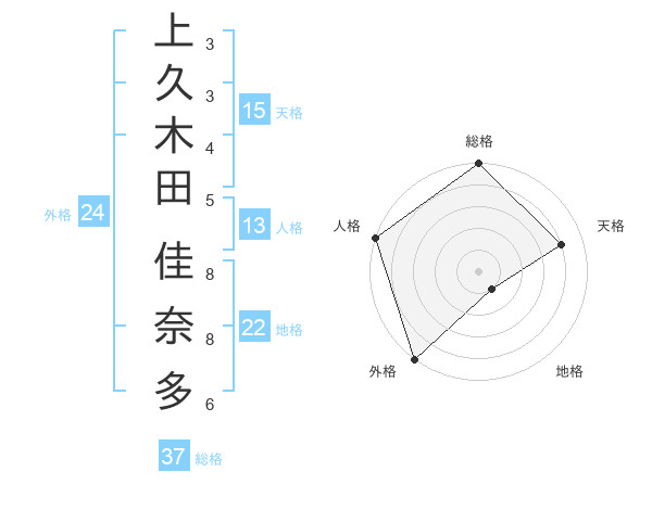 上久木田 佳奈多さんを姓名の画数から五運を鑑定