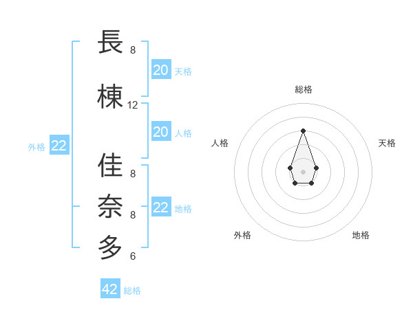 長棟 佳奈多さんを姓名の画数から五運を鑑定