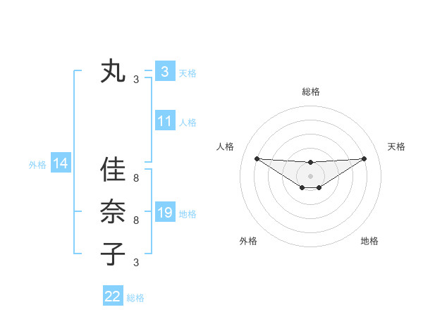 丸 佳奈子さんを姓名の画数から五運を鑑定