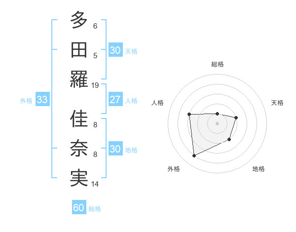 多田羅 佳奈実さんを姓名の画数から五運を鑑定