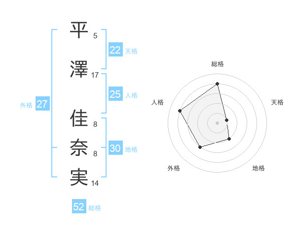 平澤 佳奈実さんを姓名の画数から五運を鑑定