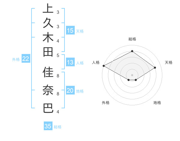 上久木田 佳奈巴さんを姓名の画数から五運を鑑定
