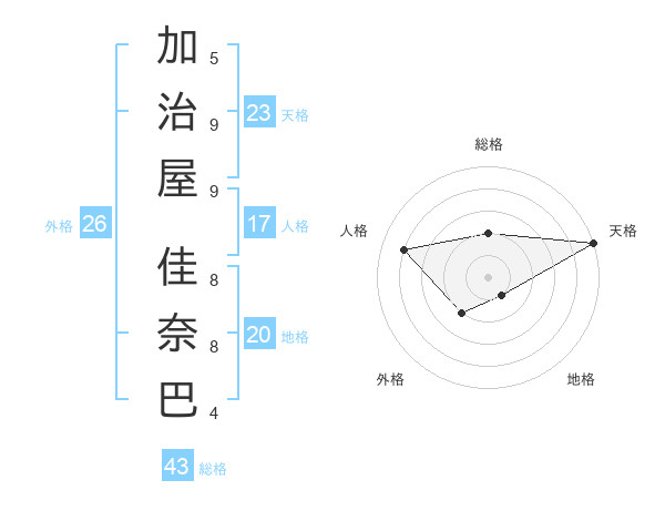 加治屋 佳奈巴さんを姓名の画数から五運を鑑定
