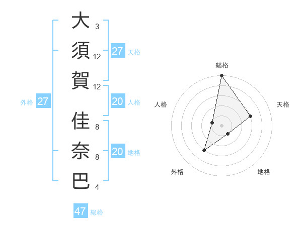 大須賀 佳奈巴さんの総格は47画の5点!