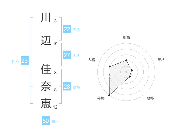 川辺 佳奈恵さんを姓名の画数から五運を鑑定