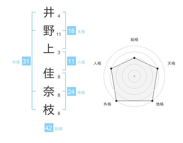 井野上 佳奈枝さんの総格は42画の3点