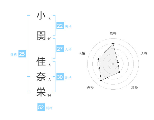 小関 佳奈栄さんを姓名の画数から五運を鑑定