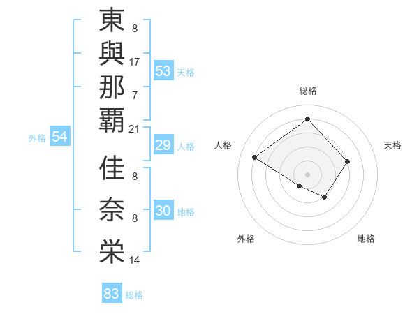 東與那覇 佳奈栄さんの総格は83画の4点!