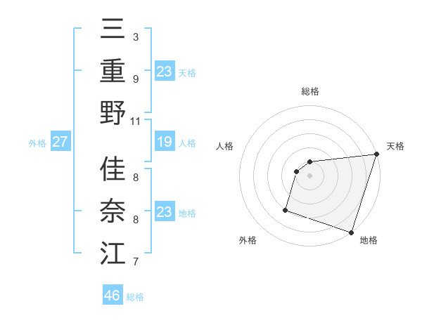三重野 佳奈江さんを姓名の画数から五運を鑑定