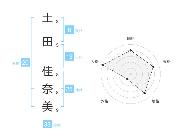 土田 佳奈美さんを姓名の画数から五運を鑑定
