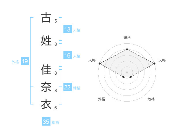 古姓 佳奈衣さんの天格は13画の5点!