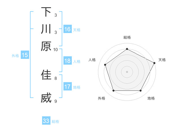 下川原 佳威さんの総格は33画の4点!