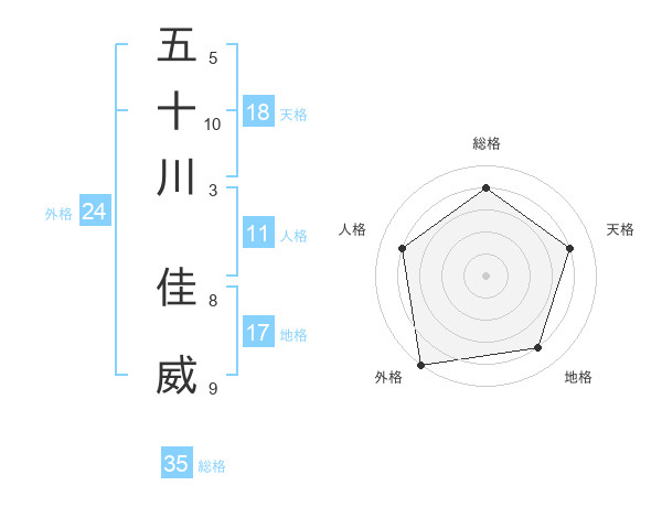 五十川 佳威さんを姓名の画数から五運を鑑定