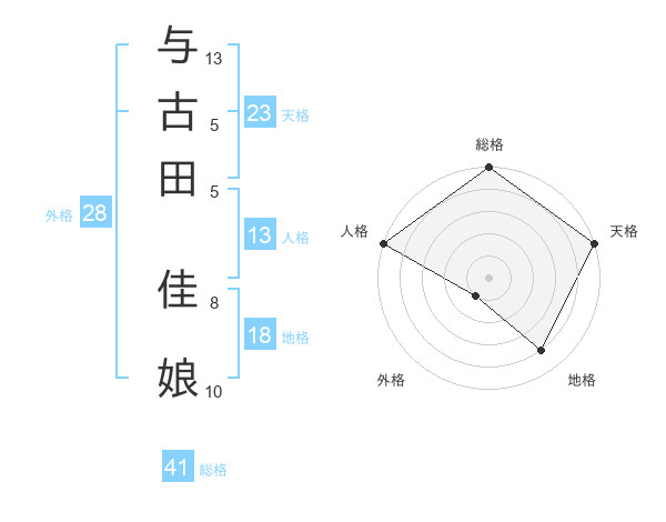 与古田 佳娘さんを姓名の画数から五運を鑑定
