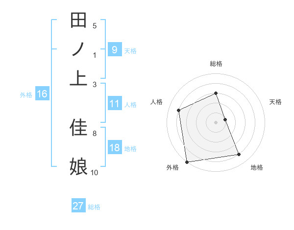 田ノ上 佳娘さんを姓名の画数から五運を鑑定