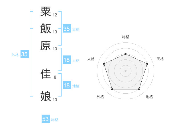 粟飯原 佳娘さんの総格は53画の3点!