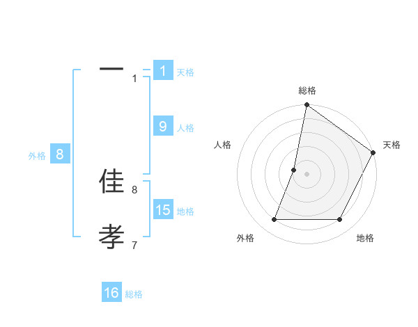 一 佳孝さんの総格は16画の5点!