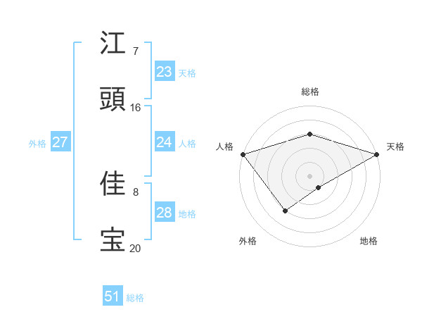 江頭 佳宝さんを姓名の画数から五運を鑑定