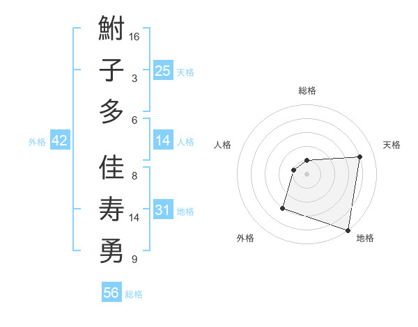 鮒子多 佳寿勇さんの地格は31画の5点!