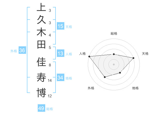 上久木田 佳寿博さんの天格は15画の4点!