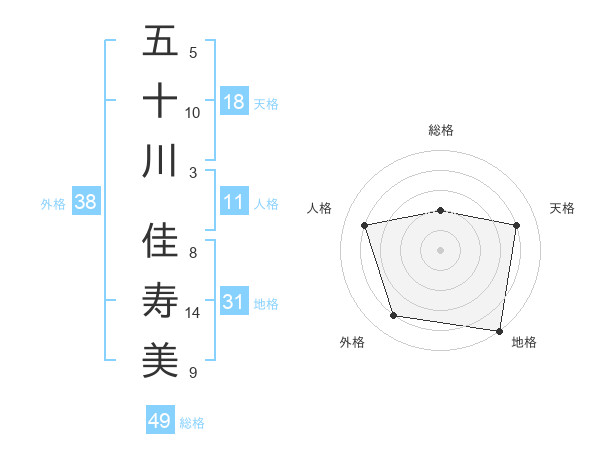 五十川 佳寿美さんの外格は38画の4点!
