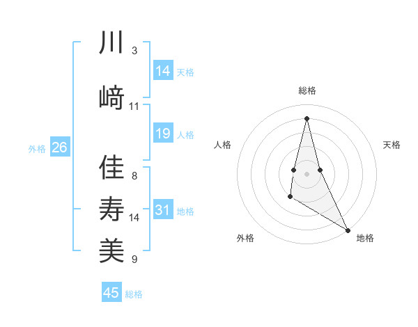 川﨑 佳寿美さんの総格は45画の4点!