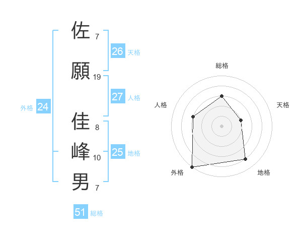 佐願 佳峰男さんを姓名の画数から五運を鑑定