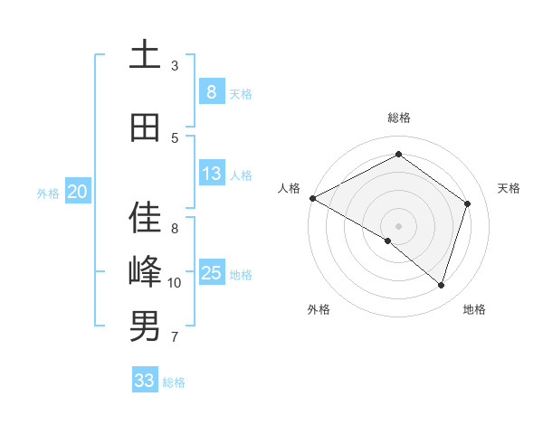 土田 佳峰男さんを姓名の画数から五運を鑑定