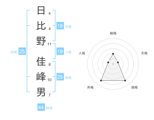 日比野 佳峰男さんの総格は44画の2点!