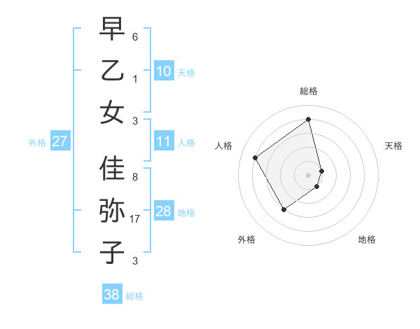 早乙女 佳弥子さんを姓名の画数から五運を鑑定