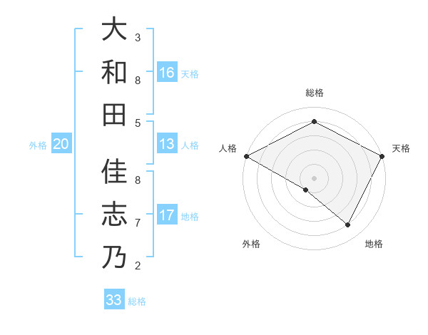 大和田 佳志乃さんを姓名の画数から五運を鑑定