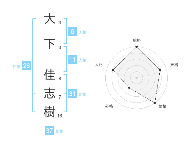 大下 佳志樹さんを姓名の画数から五運を鑑定