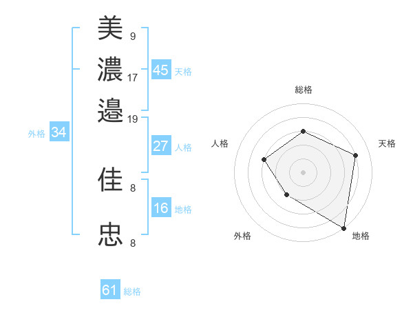 美濃邉 佳忠さんの総格は61画の3点!