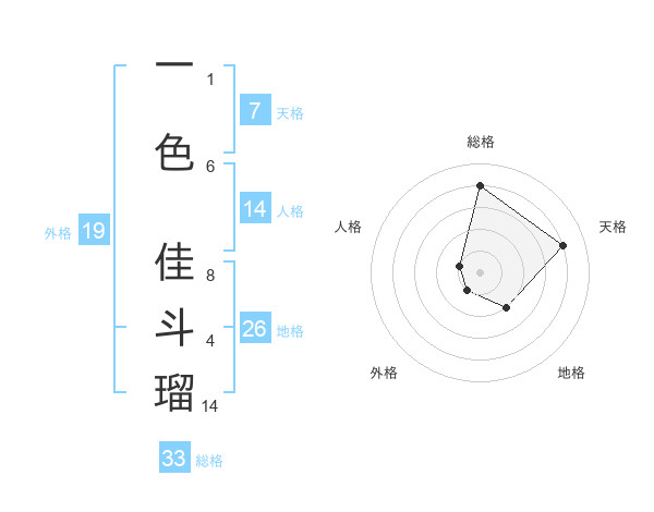 一色 佳斗瑠さんの外格は19画の1点!