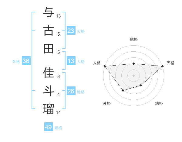 与古田 佳斗瑠さんの天格は23画の5点!