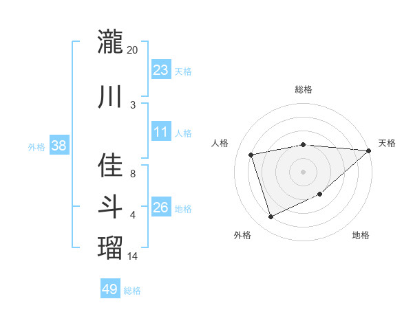瀧川 佳斗瑠さんの総格は49画の2点!