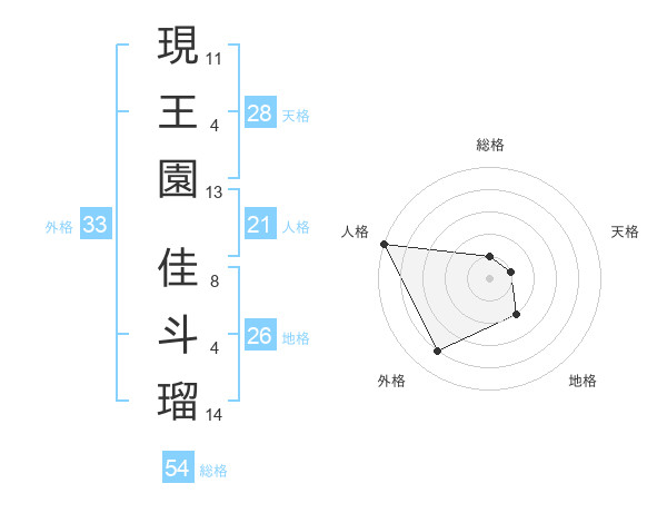 現王園 佳斗瑠さんを姓名の画数から五運を鑑定