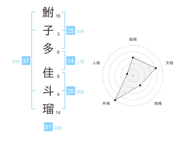 鮒子多 佳斗瑠さんの総格は51画の3点!