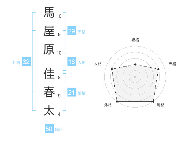 馬屋原 佳春太さんの総格は50画の2点!