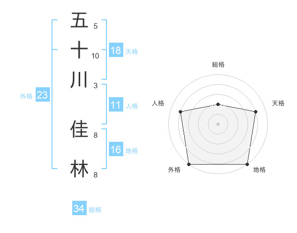 五十川 佳林さんを姓名の画数から五運を鑑定