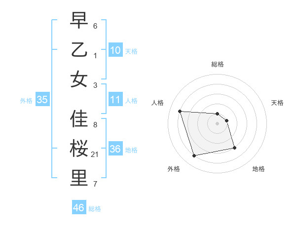 早乙女 佳桜里さんを姓名の画数から五運を鑑定