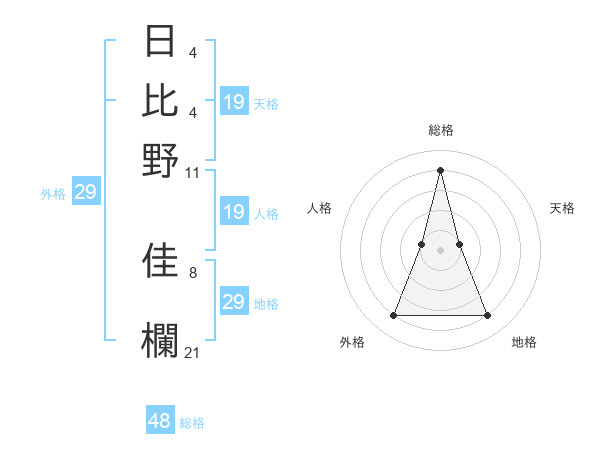 日比野 佳欄さんを姓名の画数から五運を鑑定