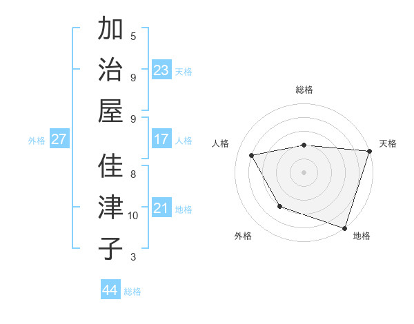 加治屋 佳津子さんを姓名の画数から五運を鑑定