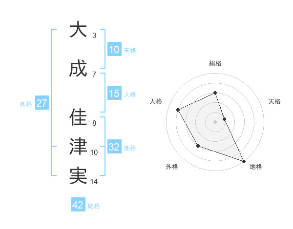 大成 佳津実さんを姓名の画数から五運を鑑定