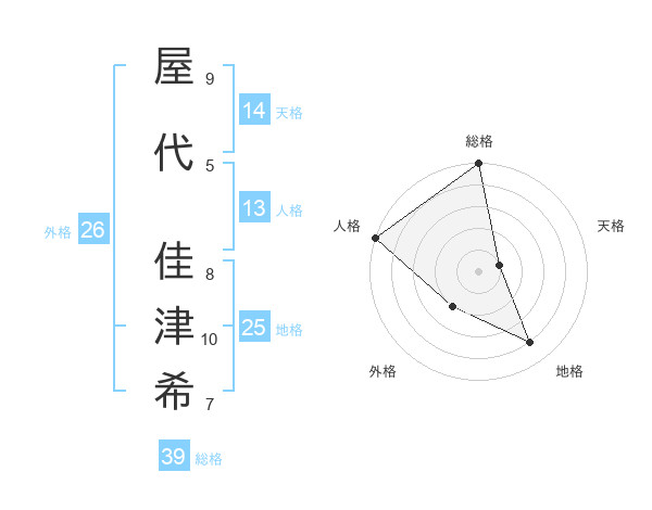 屋代 佳津希さんを姓名の画数から五運を鑑定
