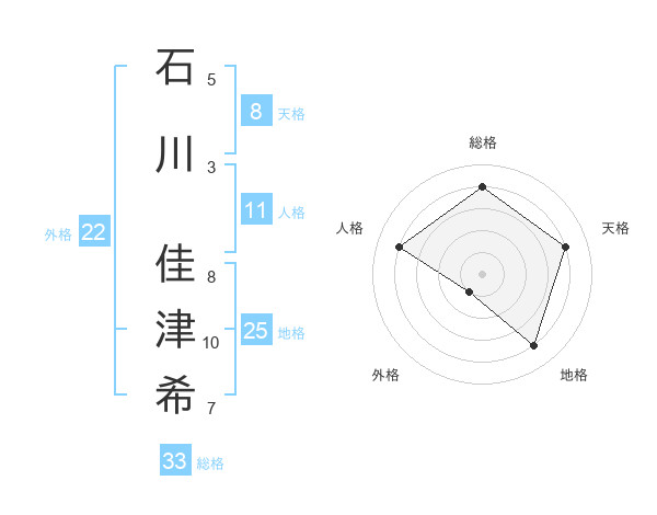 石川 佳津希さんを姓名の画数から五運を鑑定