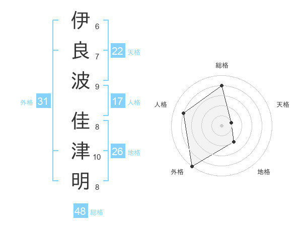 伊良波 佳津明さんを姓名の画数から五運を鑑定
