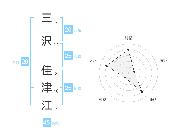 三沢 佳津江さんの総格は45画の4点!